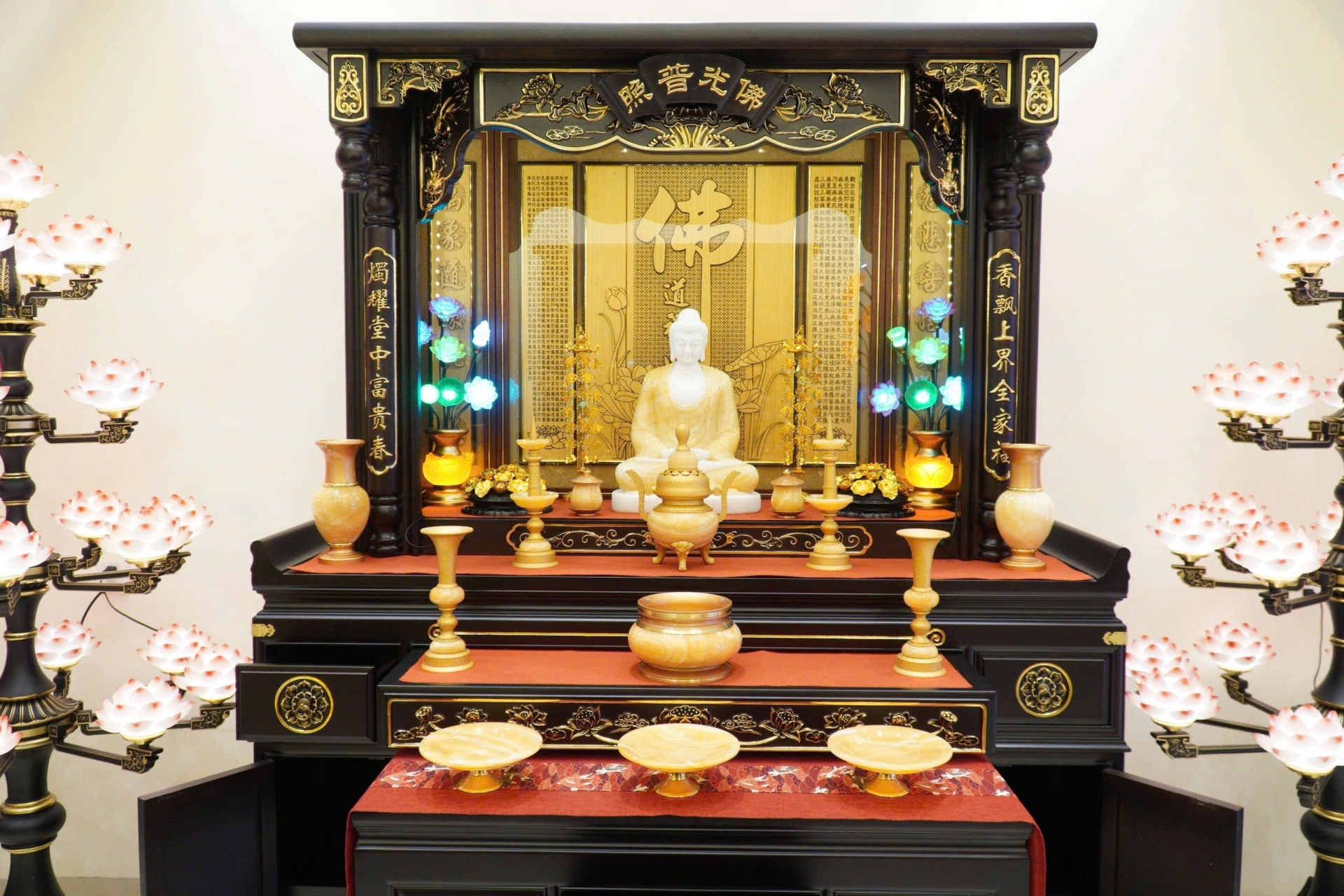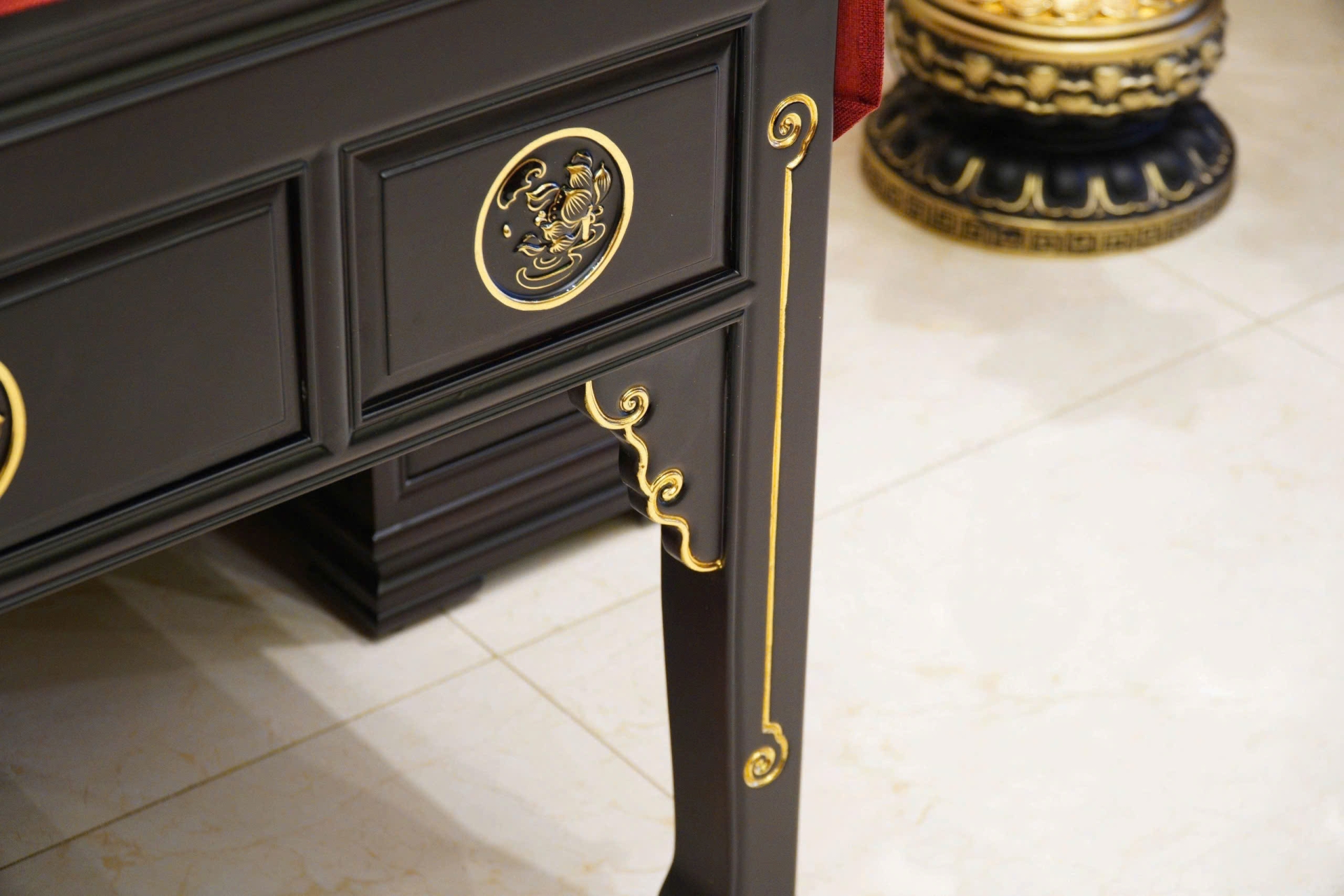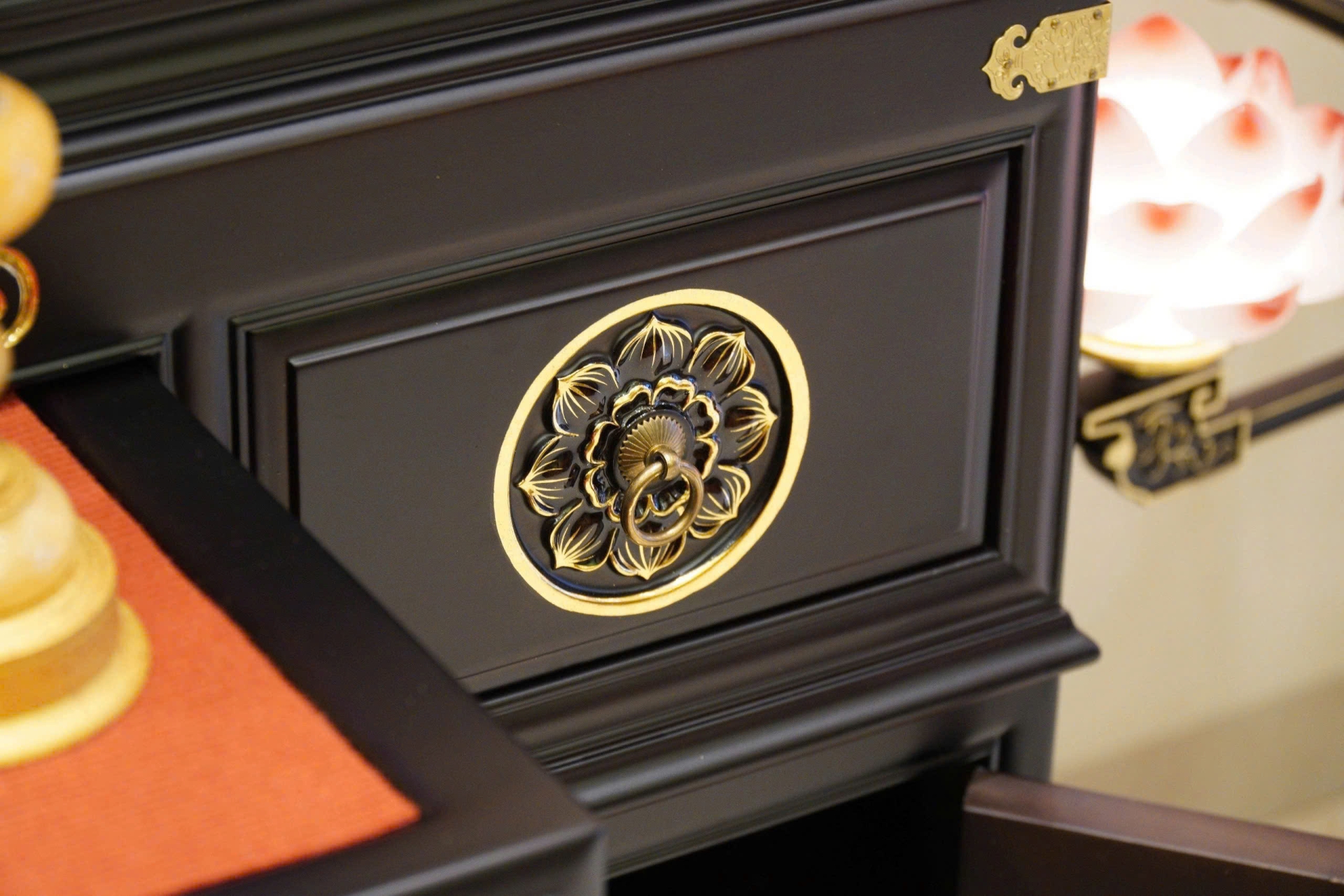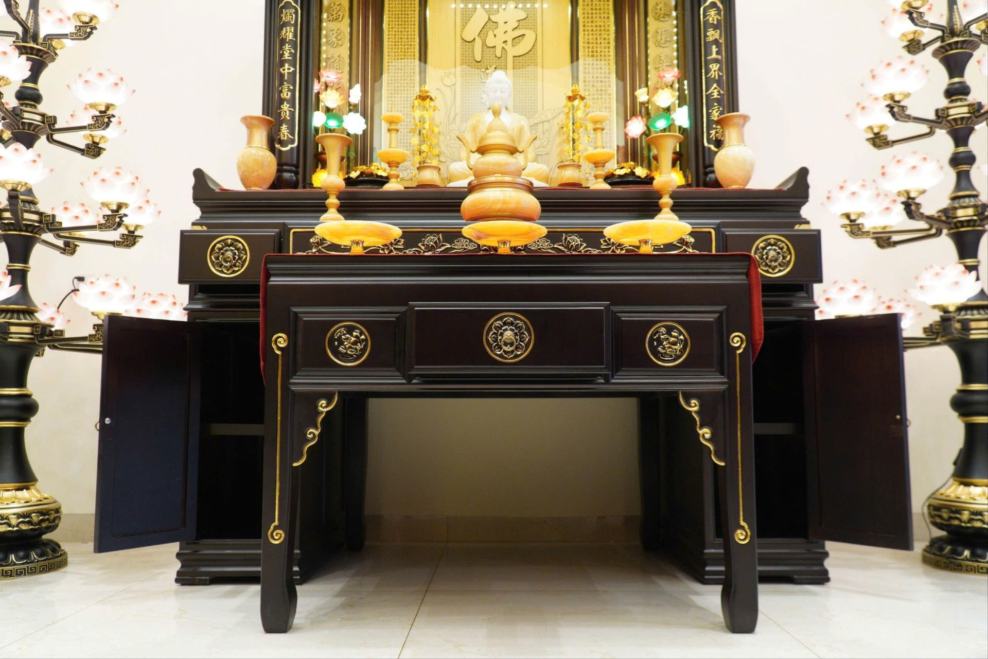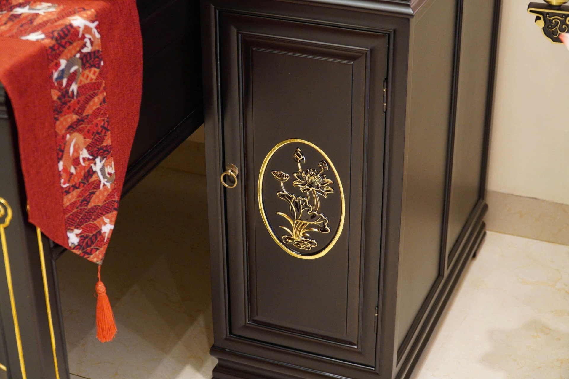 Hoa văn: chạm hoa sen, vẽ vàng khắc kinh Phật