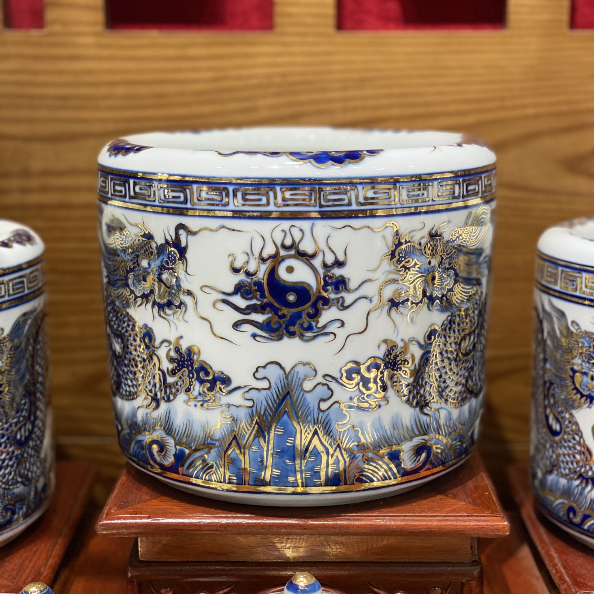 Bộ Đồ Thờ Lộc Phát Rồng – Men Lam Vàng Kim | Lộc Tụ Phát Sinh – Rồng Thiêng Bảo Hộ