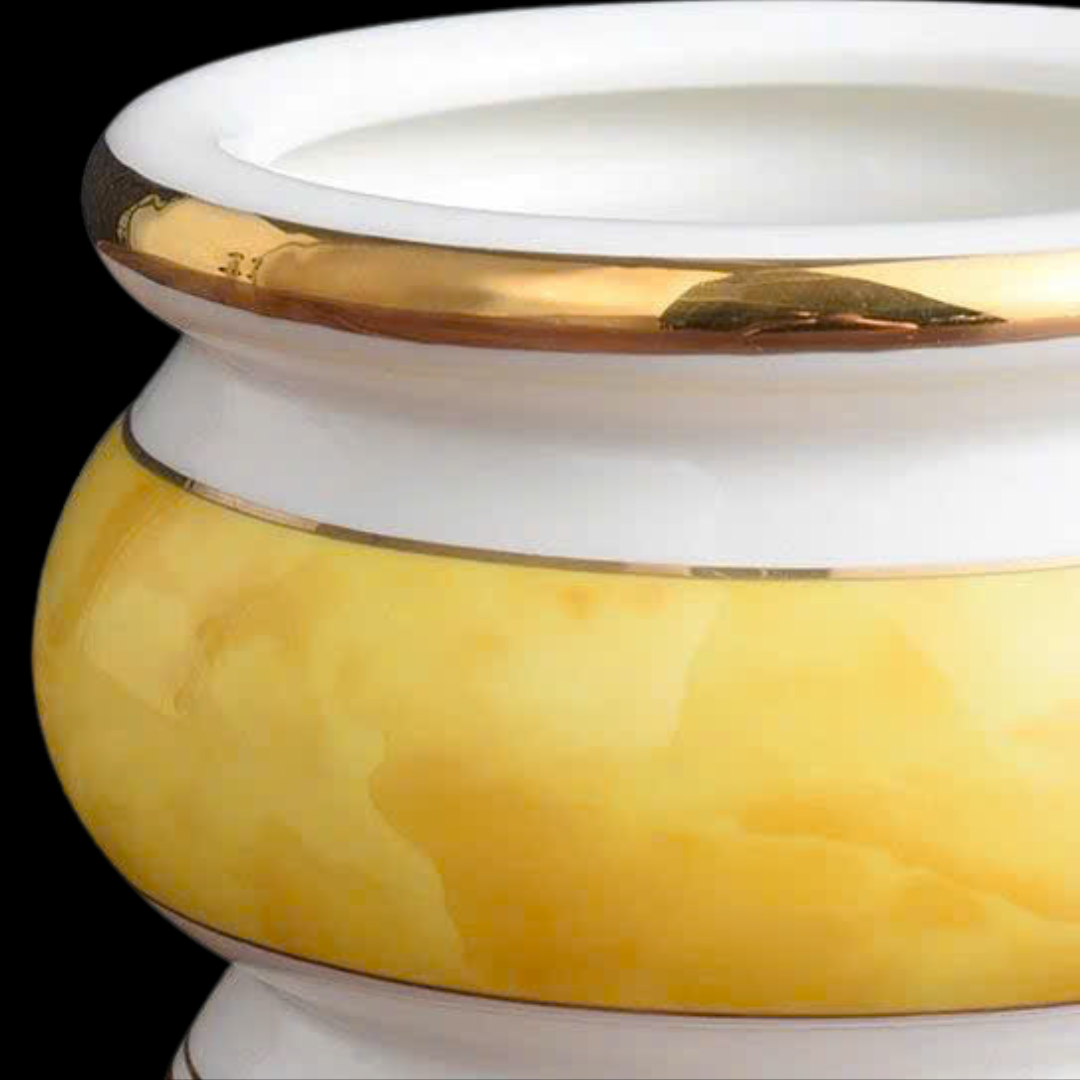 Bát Hương Vàng Đài Loan được chế tác từ gốm sứ cao cấp, phủ men vàng sang trọng, tượng trưng cho phú quý và thịnh vượng. Sản phẩm mang ý nghĩa phong thủy sâu sắc, giúp kích tài, đón lộc và thu hút vượng khí, phù hợp đặt trên bàn thờ gia tiên để đem lại may mắn, bình an và hưng thịnh cho gia đình.