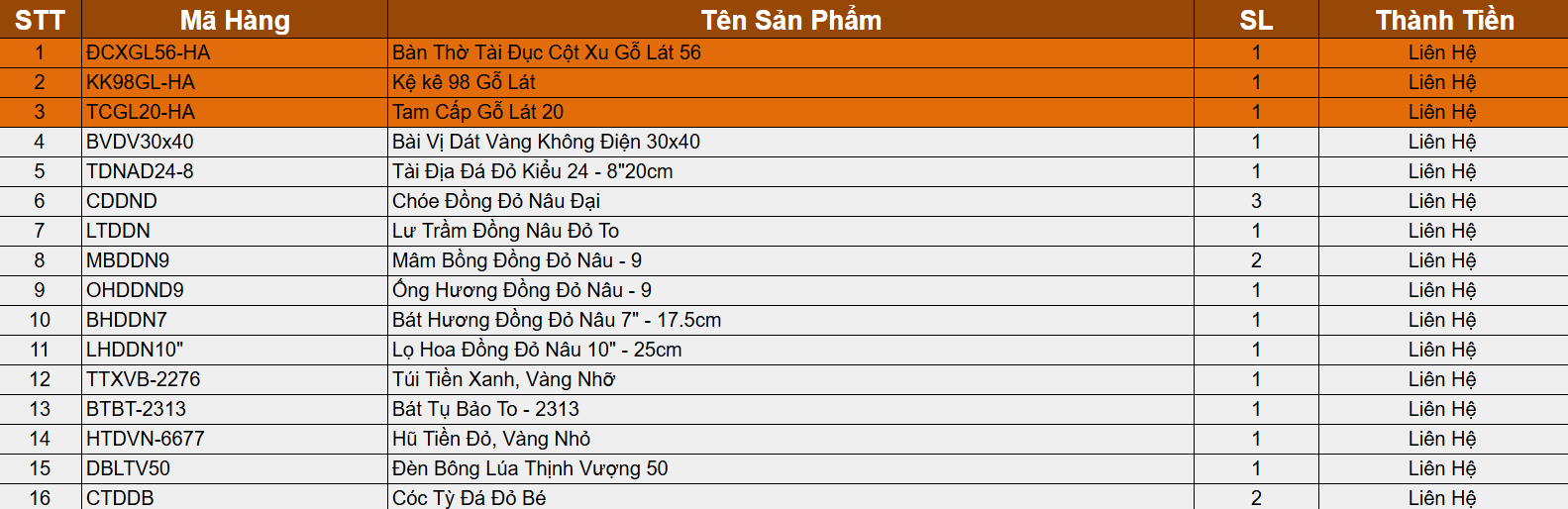 Các nhóm này hiện đều xuất hiện trong danh mục Bàn Thờ Thần Tài Thổ Địa của Hải Anh.