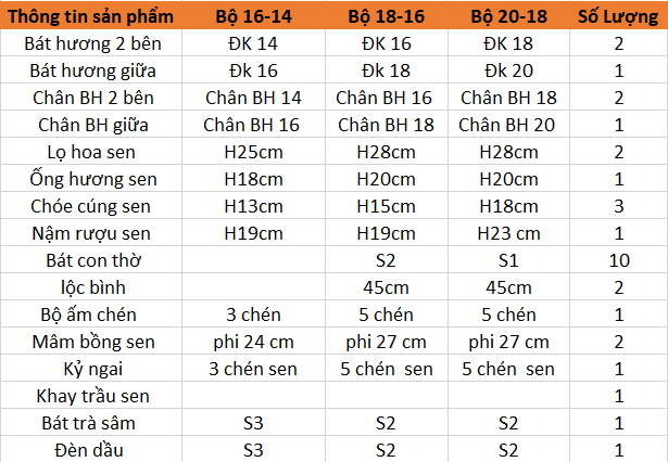 Bộ Đồ Thờ 3 Bát Hương Bao Gồm: