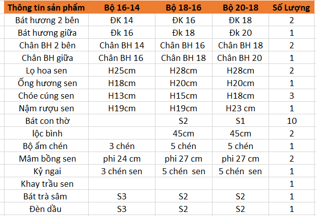 Bộ Đồ Thờ 3 Bát Hương Bao Gồm: