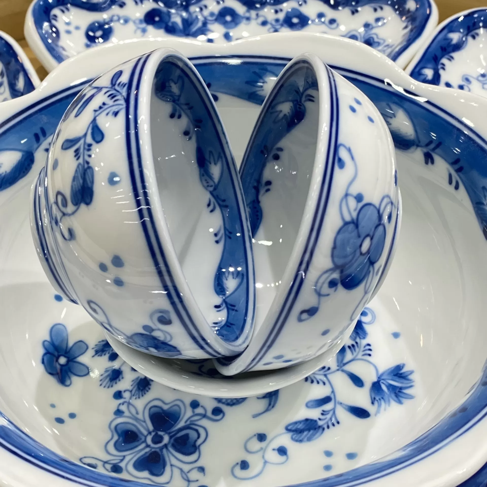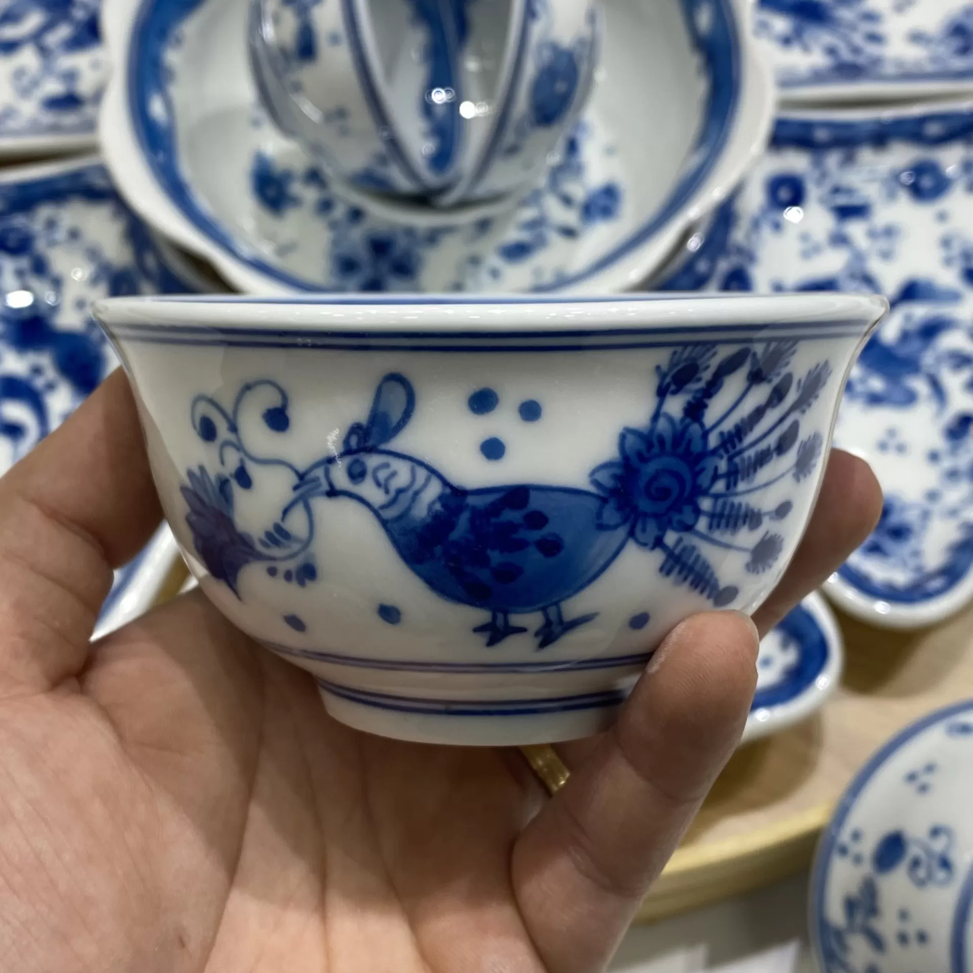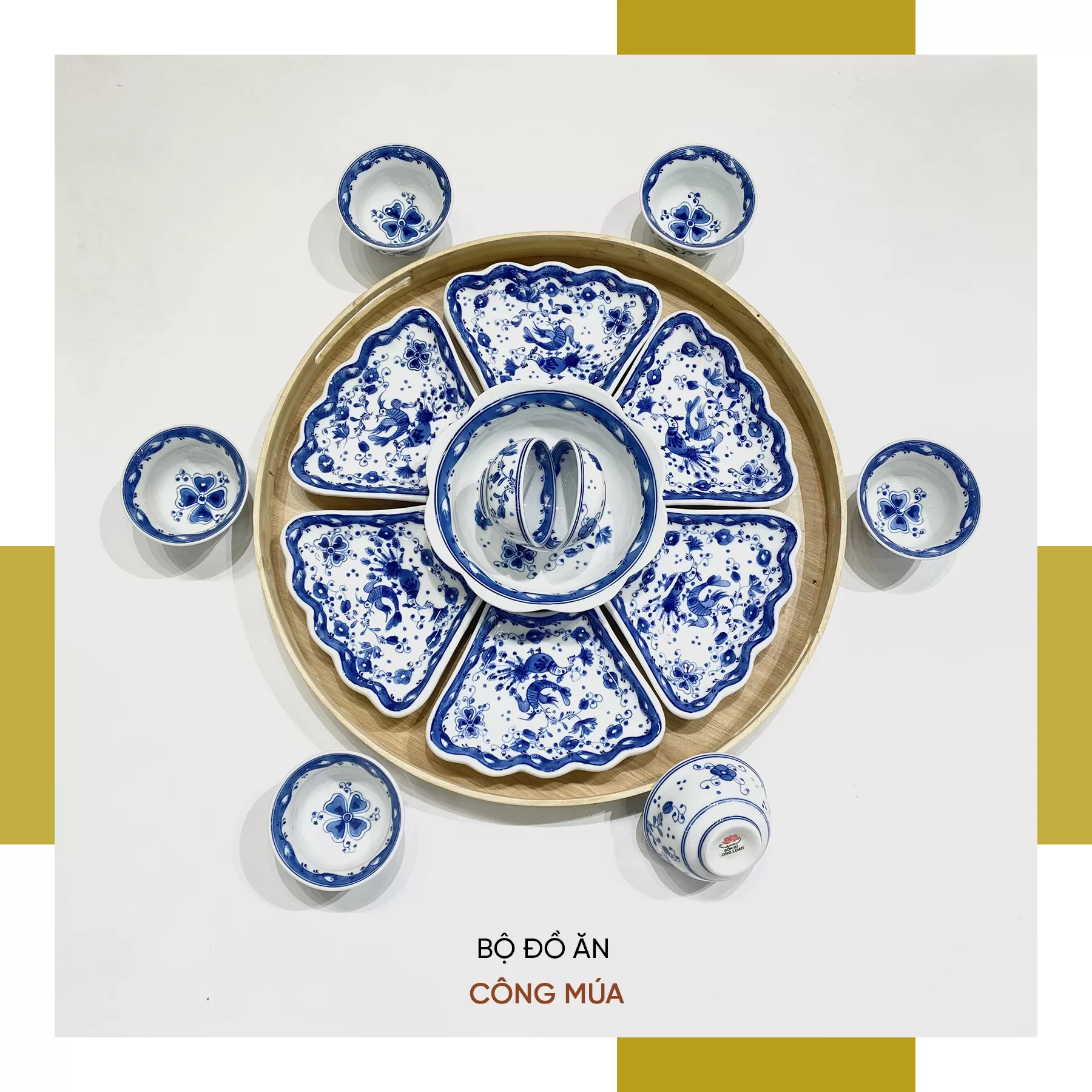 Bộ đồ ăn công múa men lam – Gốm sứ Bát Tràng cao cấp