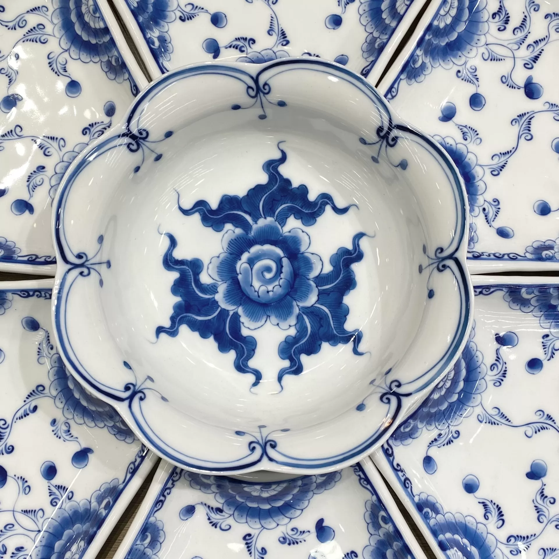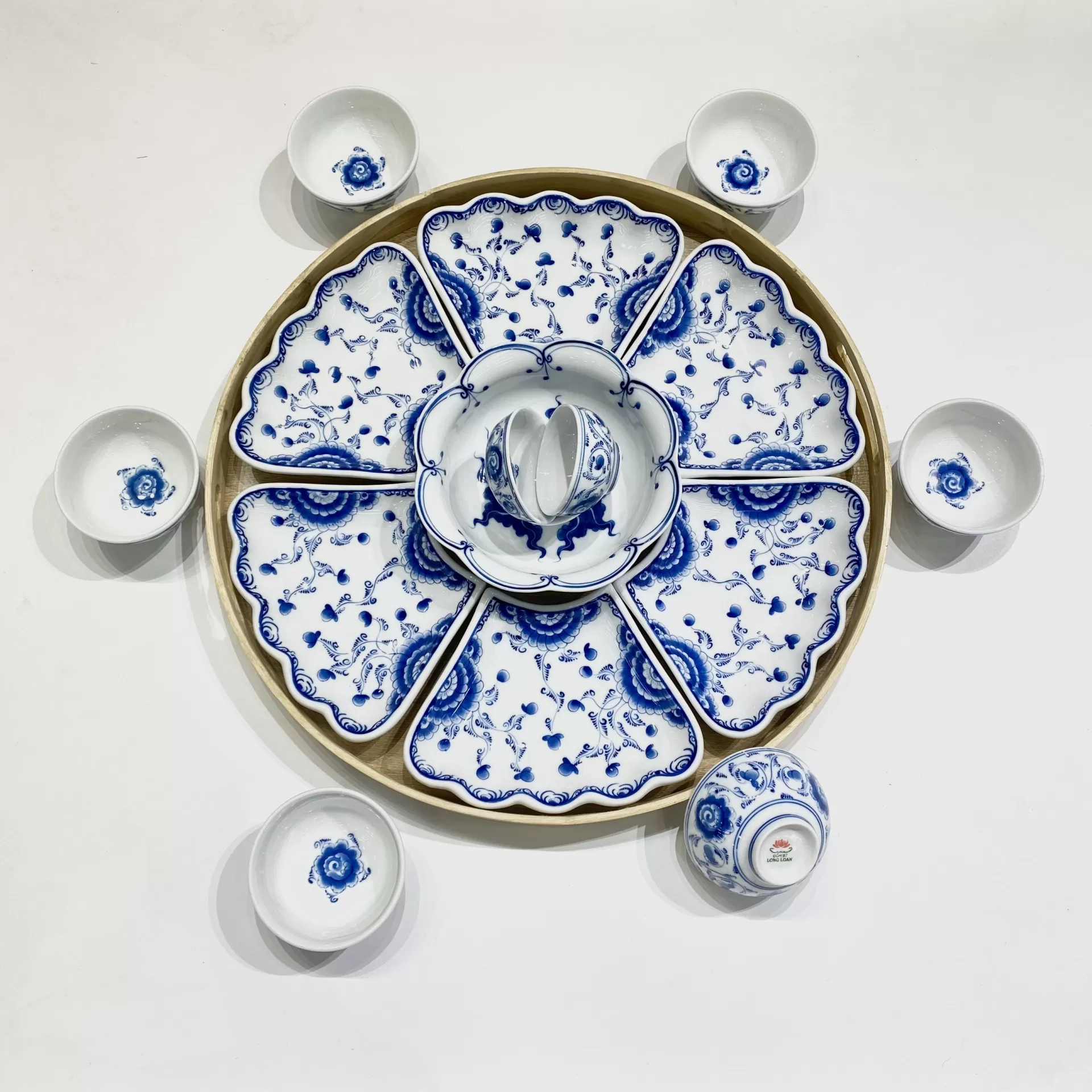 Bộ đồ ăn hoa mẫu đơn – dòng sản phẩm cao cấp được chế tác trên chất liệu sứ trắng cao cấp phủ men lam truyền thống. Sản phẩm được lấy ý tưởng từ hình họa “hoa mặt trời”. Mang vẻ đẹp hiện đại, sang trọng pha lẫn vẻ cổ điển từ đồ án hoa văn xưa.