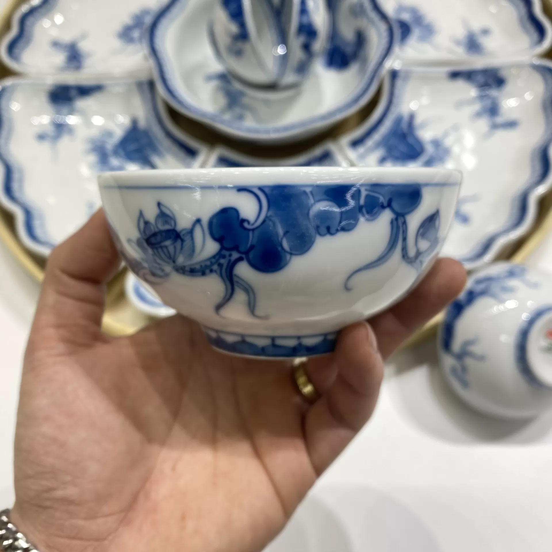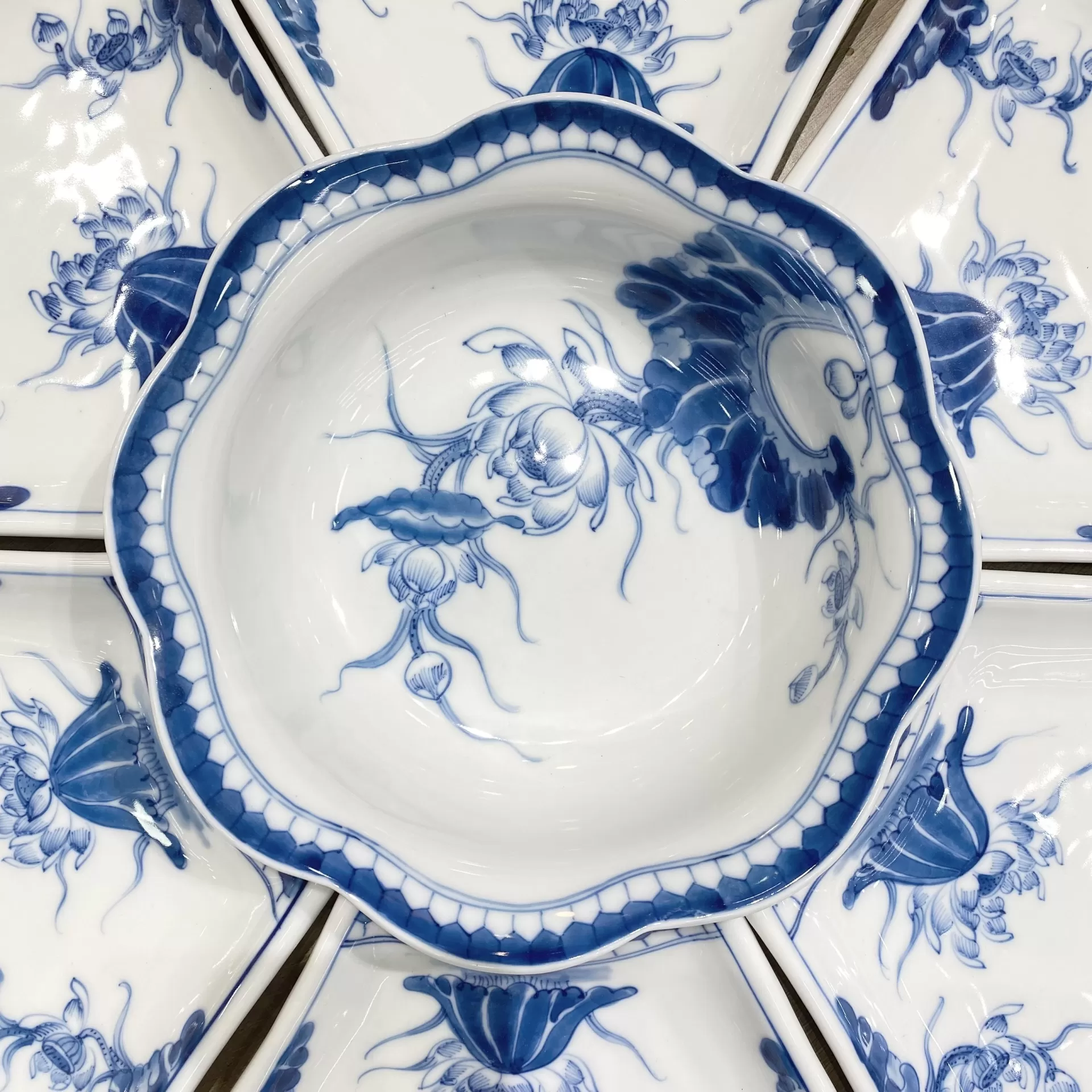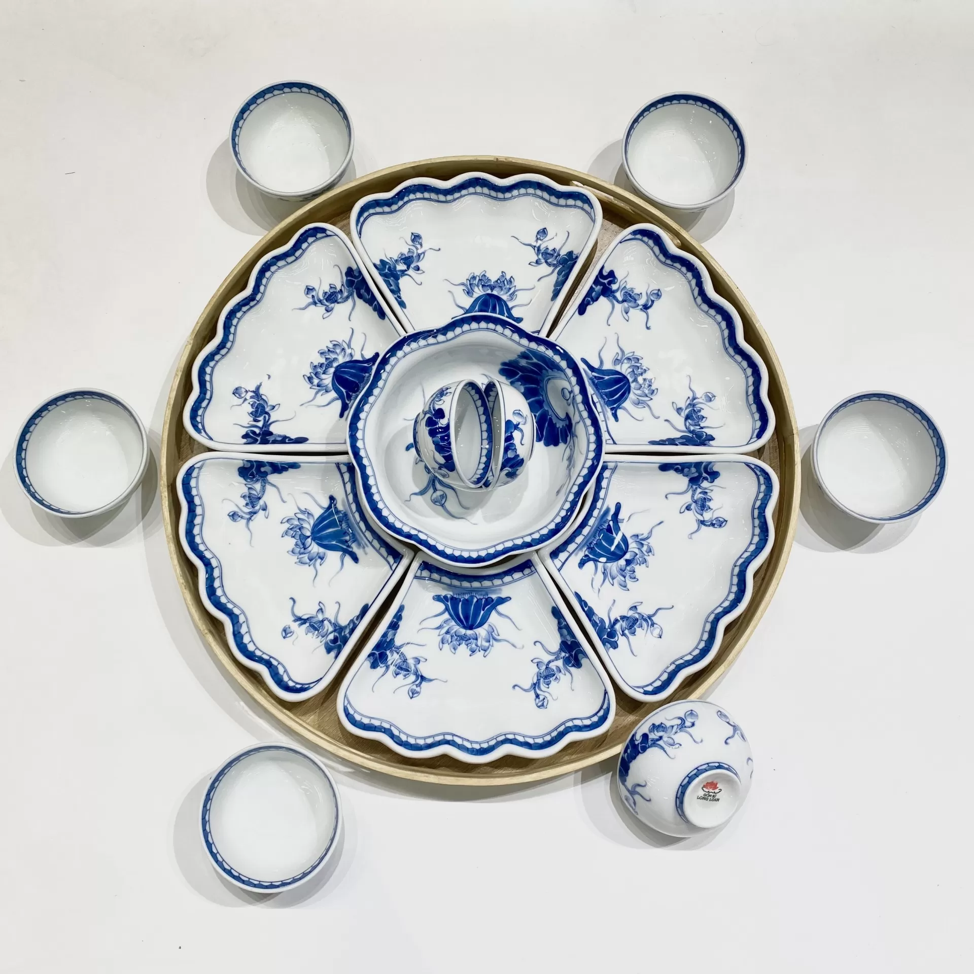 Bộ đồ ăn hoa sen phú quý men lam – Gốm sứ Bát Tràng cao cấp