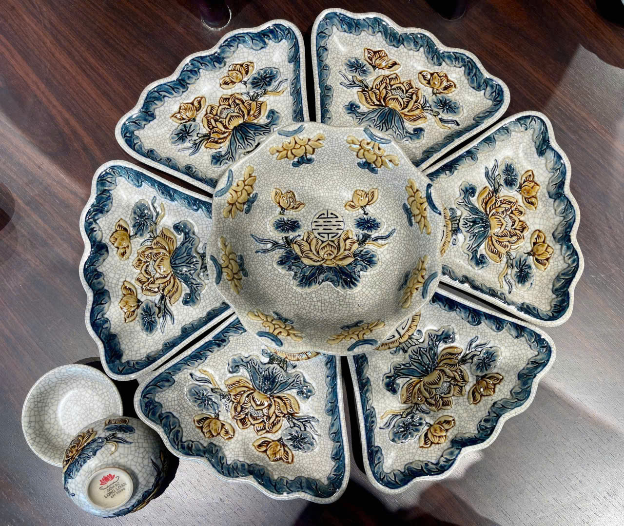 Bộ Đồ Ăn Men Rạn – dòng sản phẩm cao cấp được chế tác trên chất liệu sứ trắng cao cấp phủ men lam truyền thống. Sản phẩm được lấy ý tưởng từ hình họa “hoa mặt trời”. Mang vẻ đẹp hiện đại, sang trọng pha lẫn vẻ cổ điển từ đồ án hoa văn xưa.