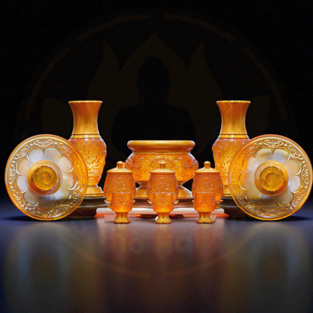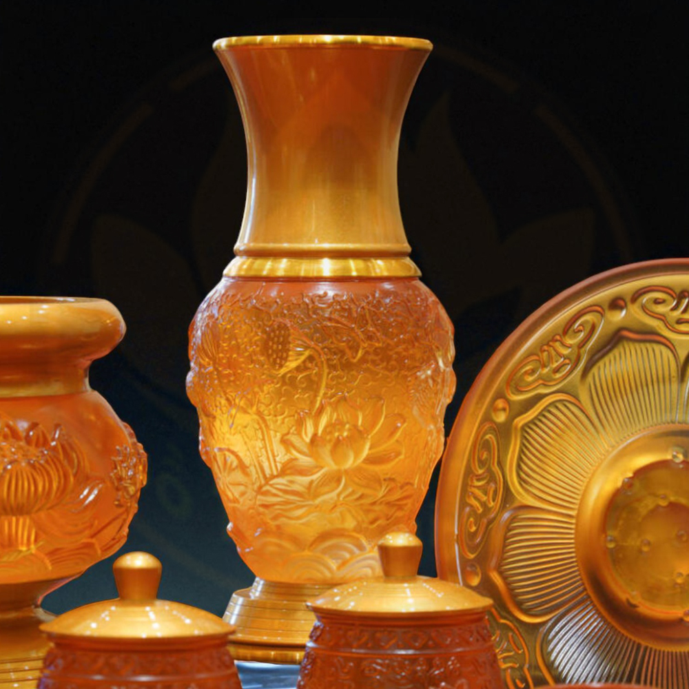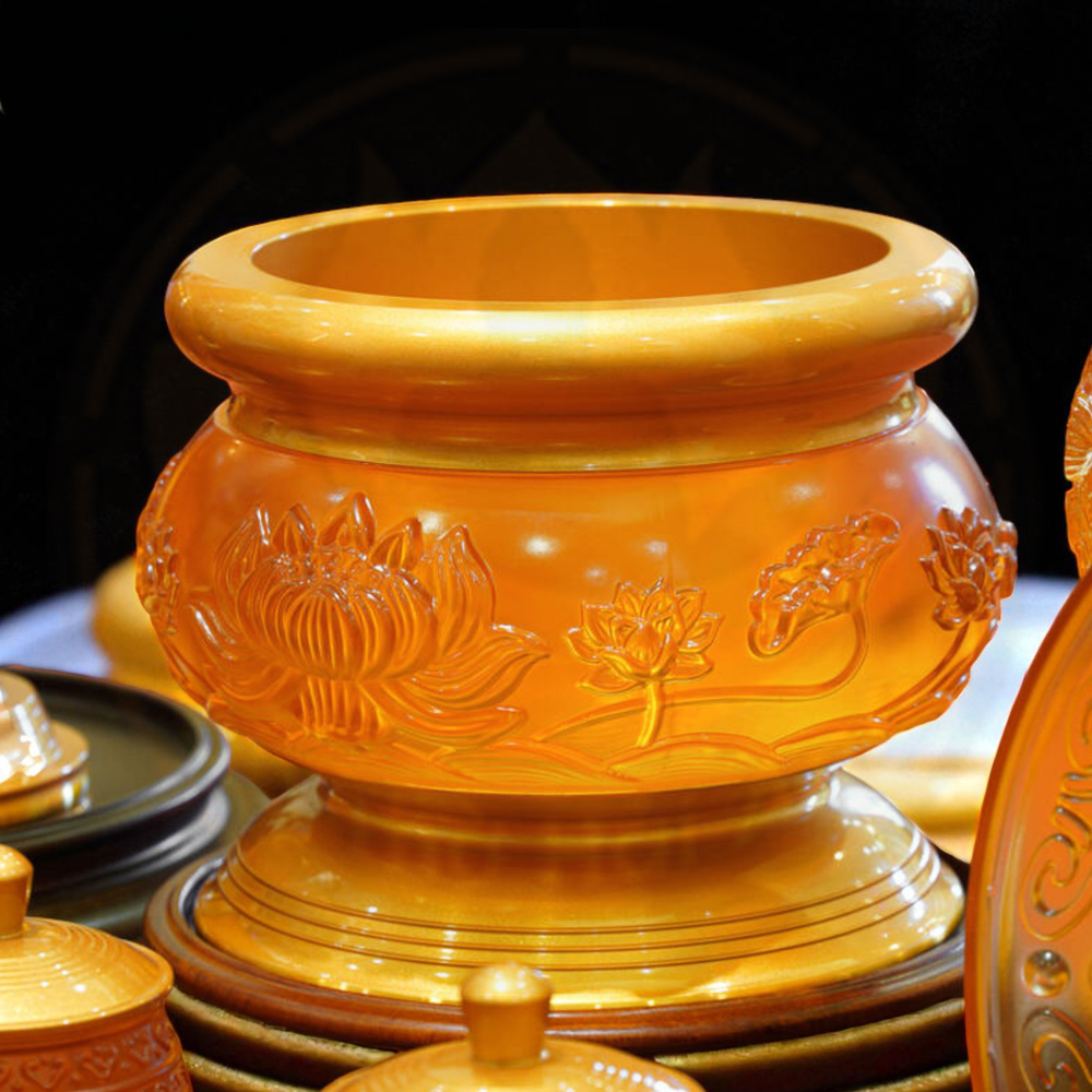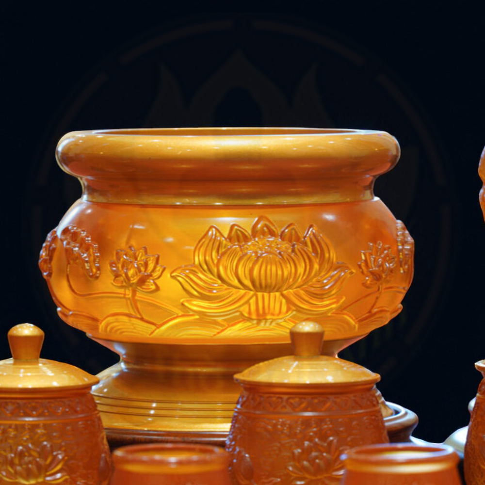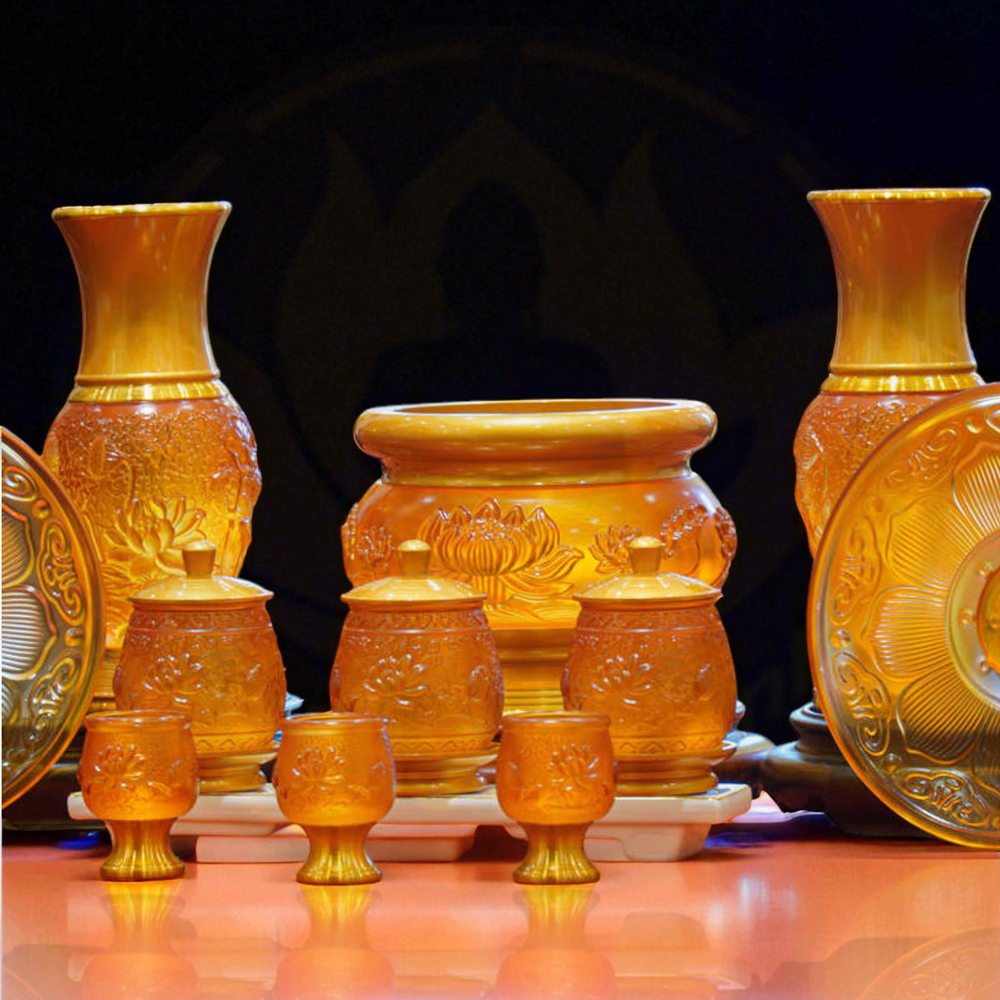 Bộ Đồ Thờ Vàng Đỏ Lưu Ly Hoa Sen Hổ Phách là lựa chọn hoàn hảo cho không gian thờ gia tiên, thờ Phật hay thờ Thần Tài. Với chất liệu lưu ly cao cấp, sản phẩm mang vẻ đẹp lung linh, sang trọng và linh thiêng, tượng trưng cho ánh sáng, trí tuệ và bình an.