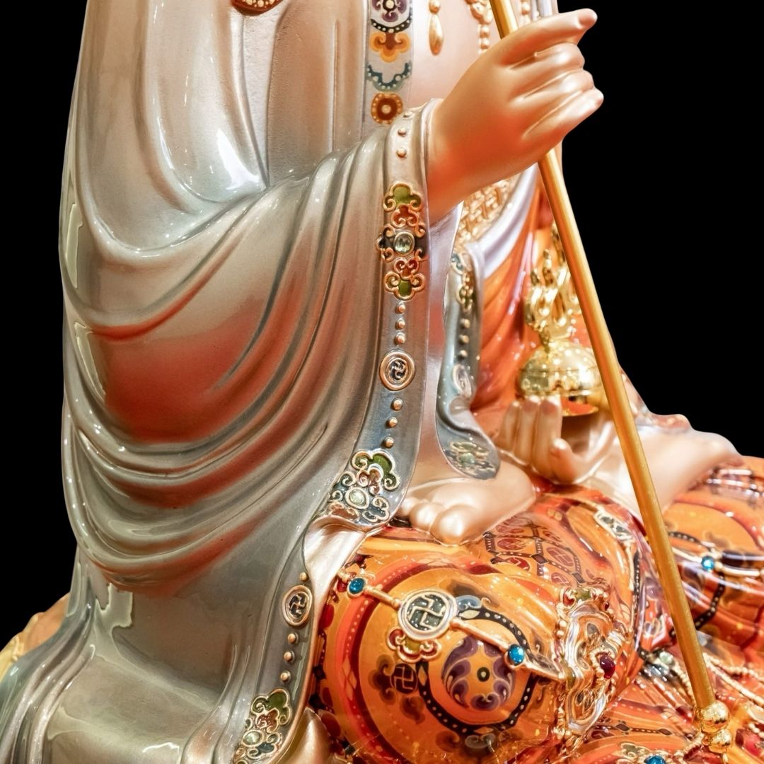 🔸 Ý nghĩa phong thủy: Mang lại sự bình an, may mắn và giúp gia chủ thu hút năng lượng tích cực. Đặt tượng trong nhà, phòng thờ hoặc nơi thiền định sẽ giúp không gian trở nên linh thiêng và thanh tịnh.