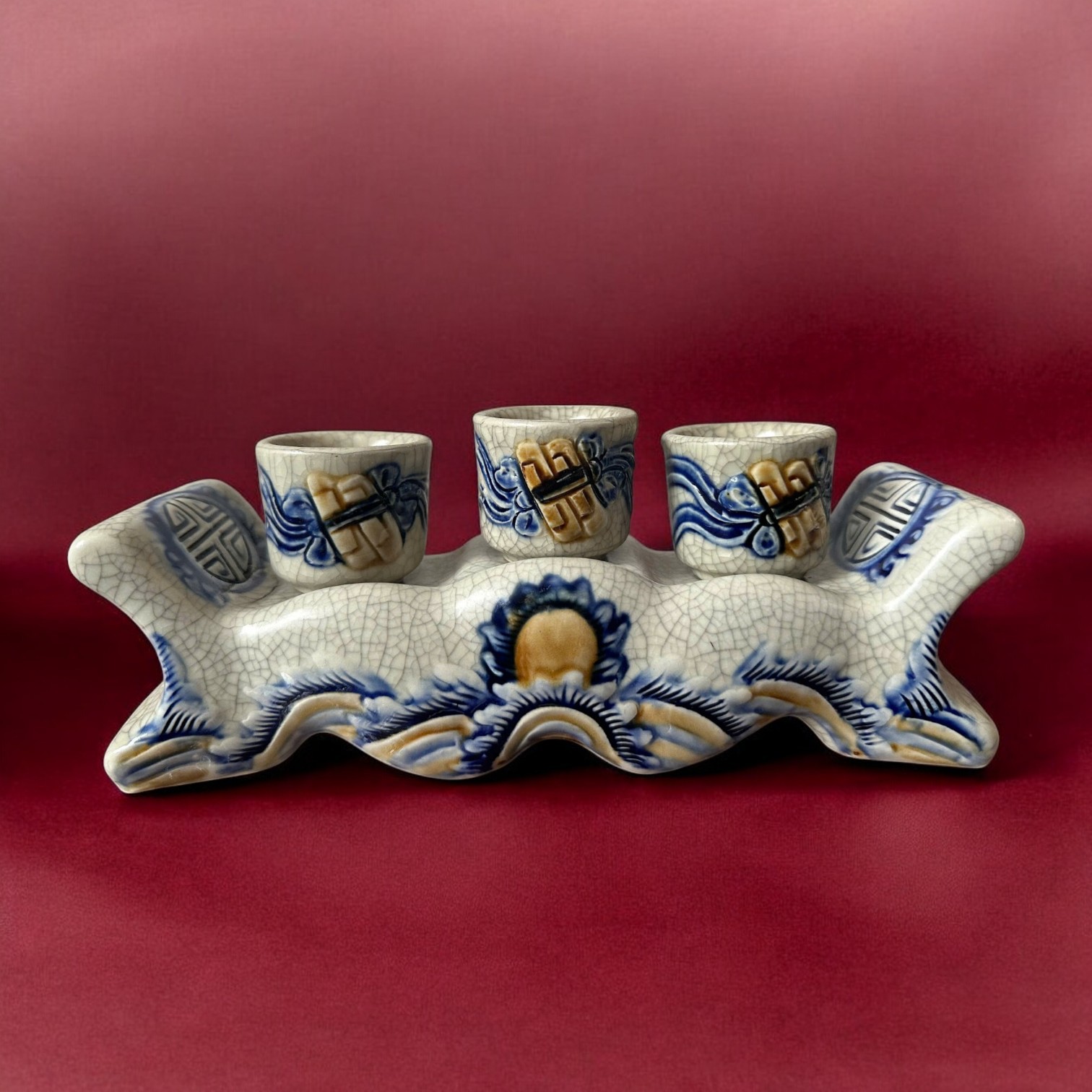 Kỷ ngai 3 chén, hay còn gọi là bộ kỷ ngũ sắc ba chén, là một phần quan trọng trong các bộ đồ thờ cúng truyền thống của nhiều gia đình Việt Nam. Được đặt trên ban thờ, kỷ ngai 3 chén không chỉ đóng vai trò chức năng mà còn mang nhiều ý nghĩa tâm linh và phong thủy.
