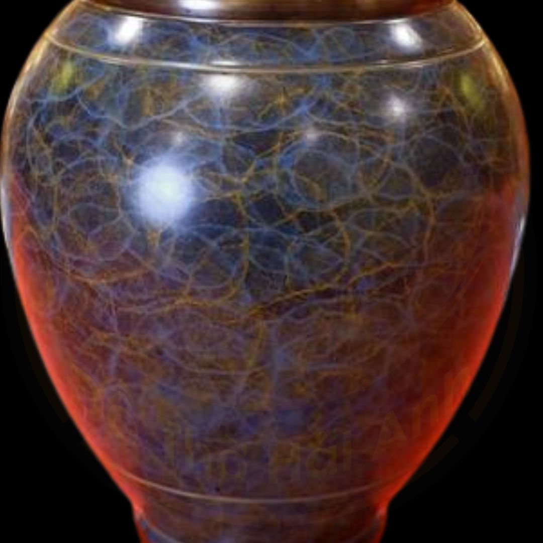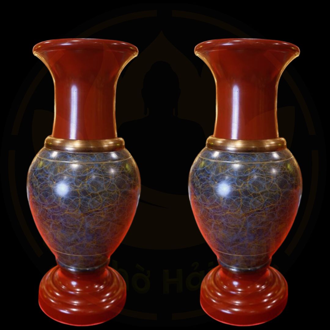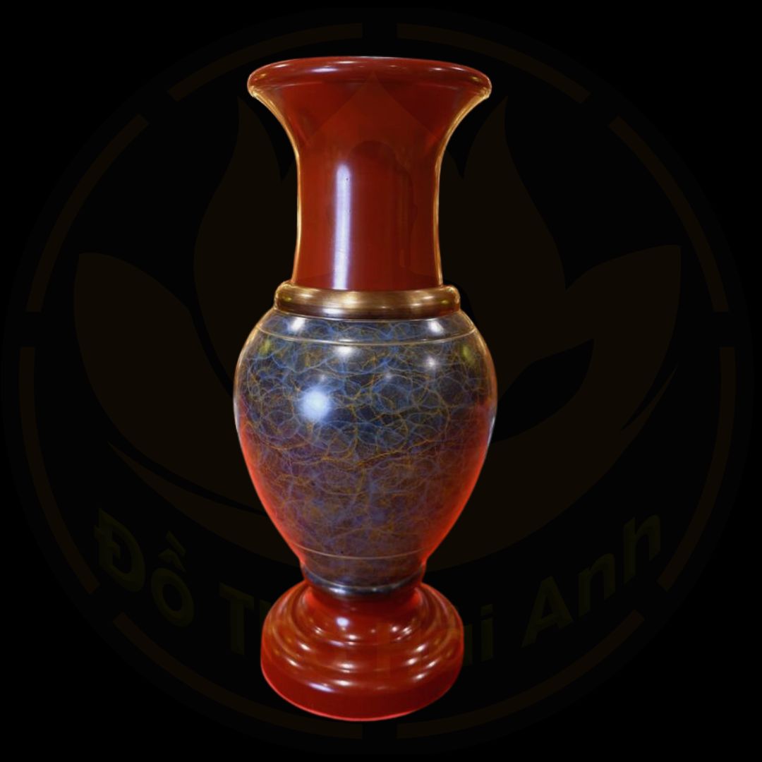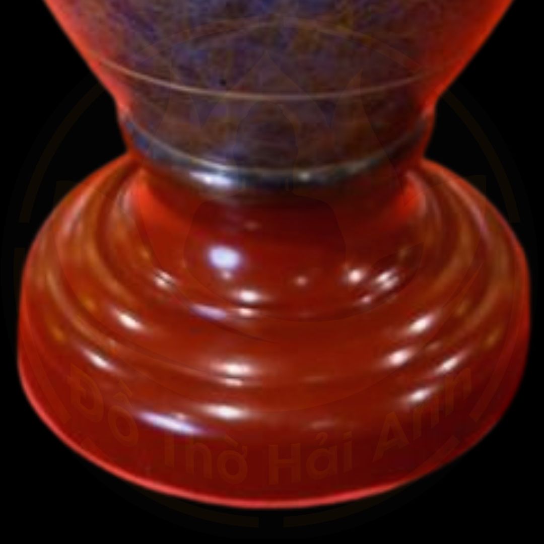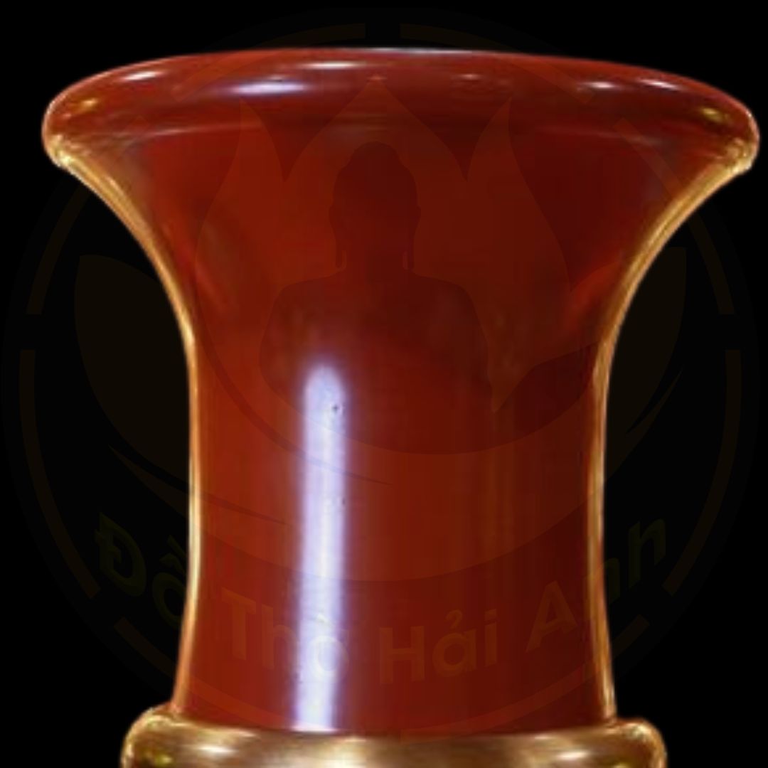 Phần miệng lọ & chân đế: màu đỏ nâu ánh đồng, phủ bóng, kết hợp với các đường viền kim loại ánh vàng đồng, tăng thêm sự tinh xảo.