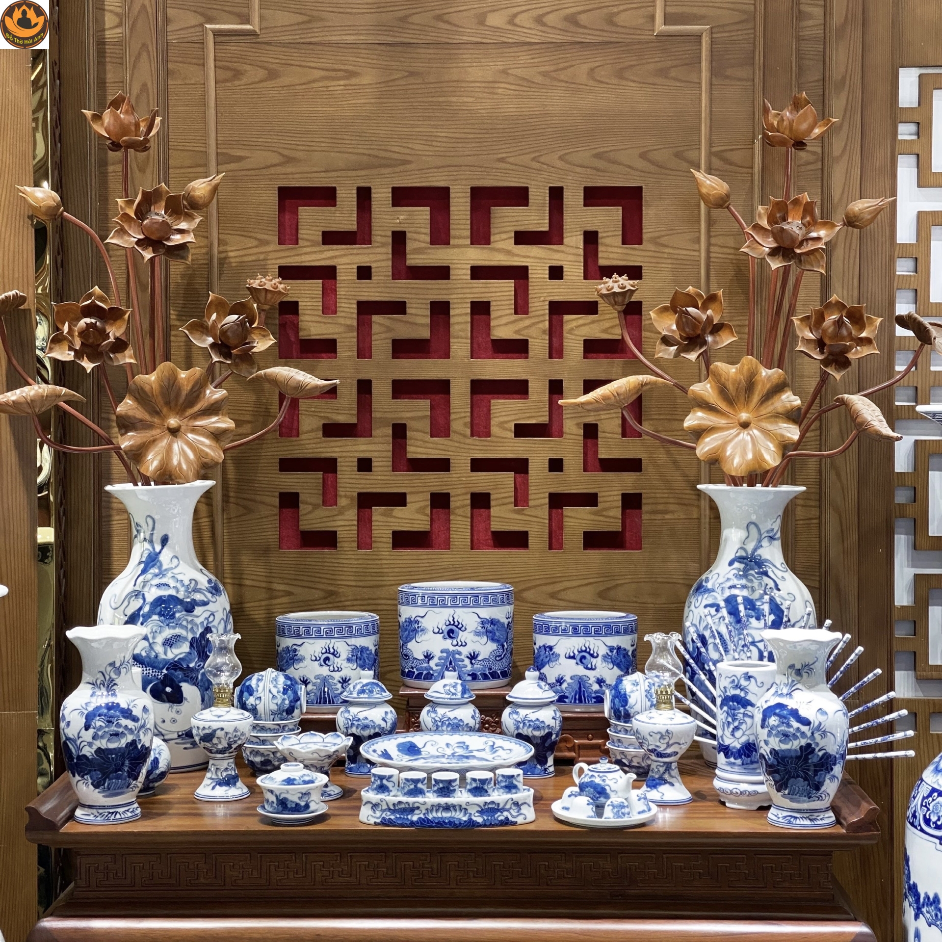 - Màu men trắng xanh sang trọng, trang nhã, phù hợp không gian trang nghiêm nơi thờ tự.