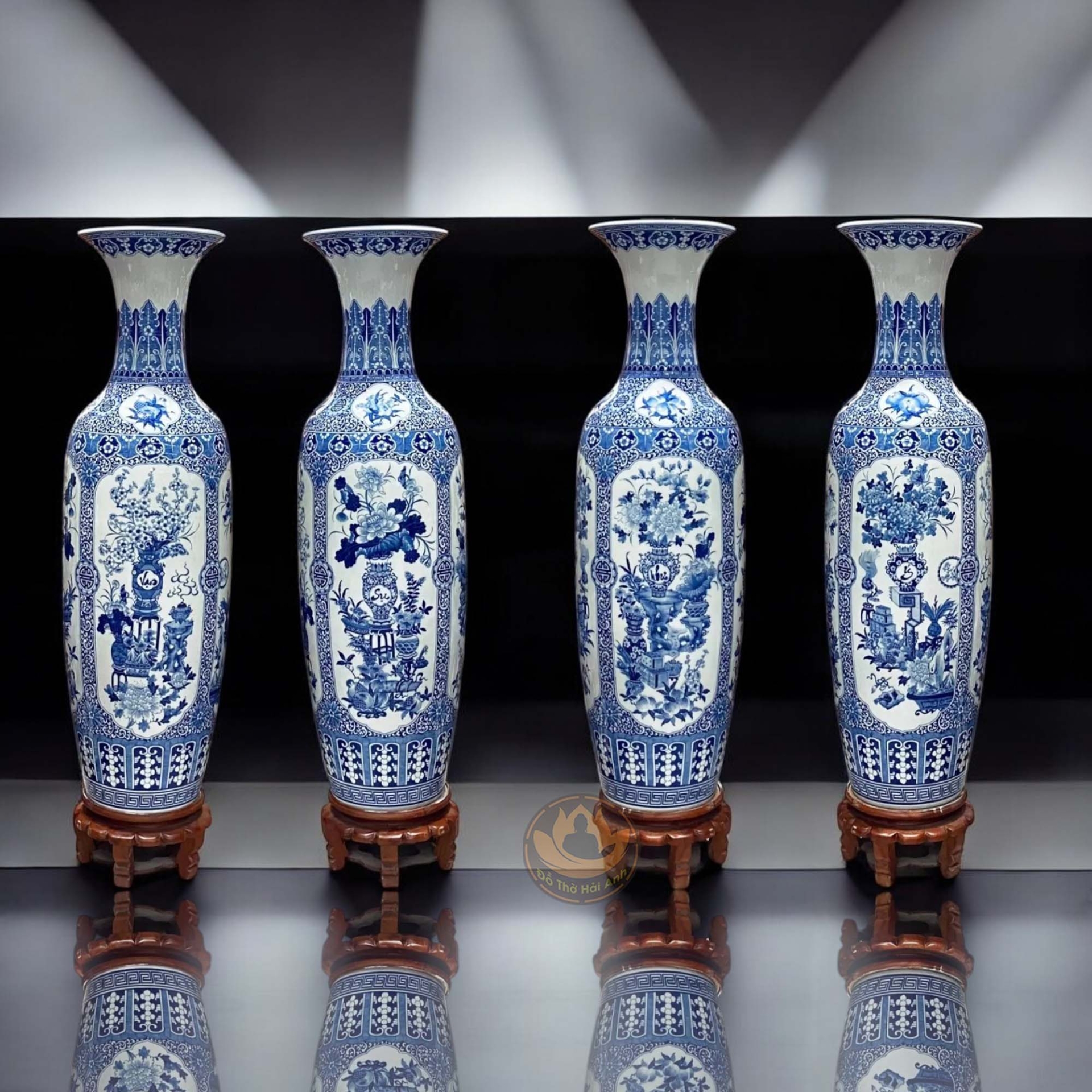 Lộc bình tứ cảnh vạn sự như ý men lam – Gốm sứ Bát Tràng cao cấp