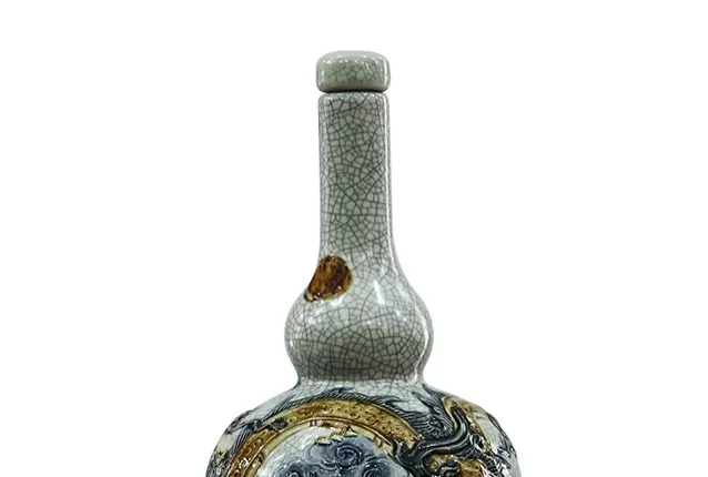 Ban thờ của mỗi dòng họ, gia đình không thể thiếu bầu rượu thờ là vật khí để hóa giải hung khí và tăng cường sức khỏe. Với Bầu Rượu Long Hý Châu họa tiết linh vật rồng uy nghi dũng mãnh biểu tượng cho sức mạnh phi thường, mang đến cho gia chủ thịnh vượng và sức mạnh uy quyền. Hoa văn đắp nổi thủ công từ bàn tay nghệ nhân Bát Tràng, bên ngoài tráng lớp men rạn cổ đặc trưng của làng cổ Gốm Bát Tràng mang đậm đà Nét Văn Hóa Tâm Linh Việt.