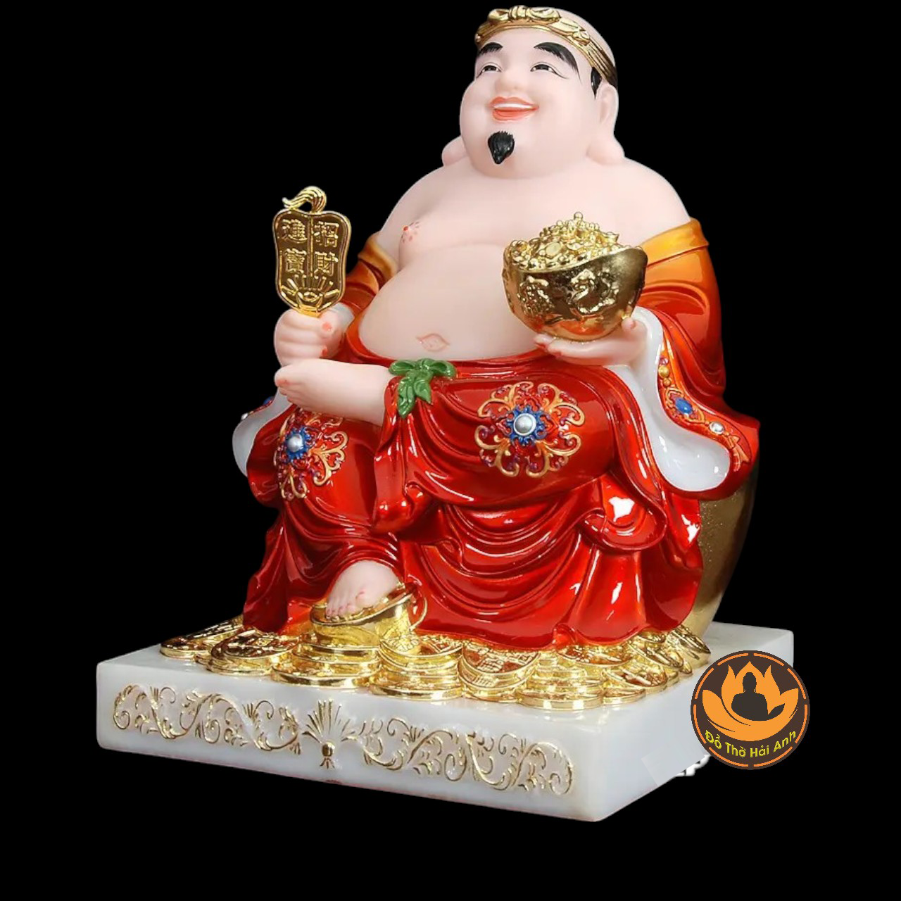 Tượng Thần Tài, Thổ Địa Ngồi Phú Quý, Bột Đá Cẩm Thạch Sơn Đỏ Cao Cấp